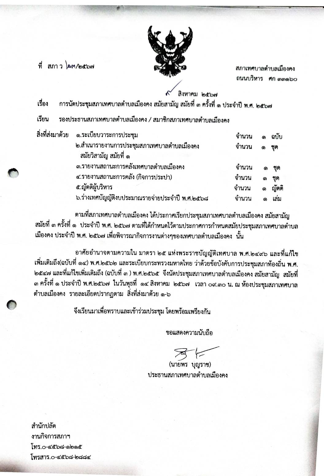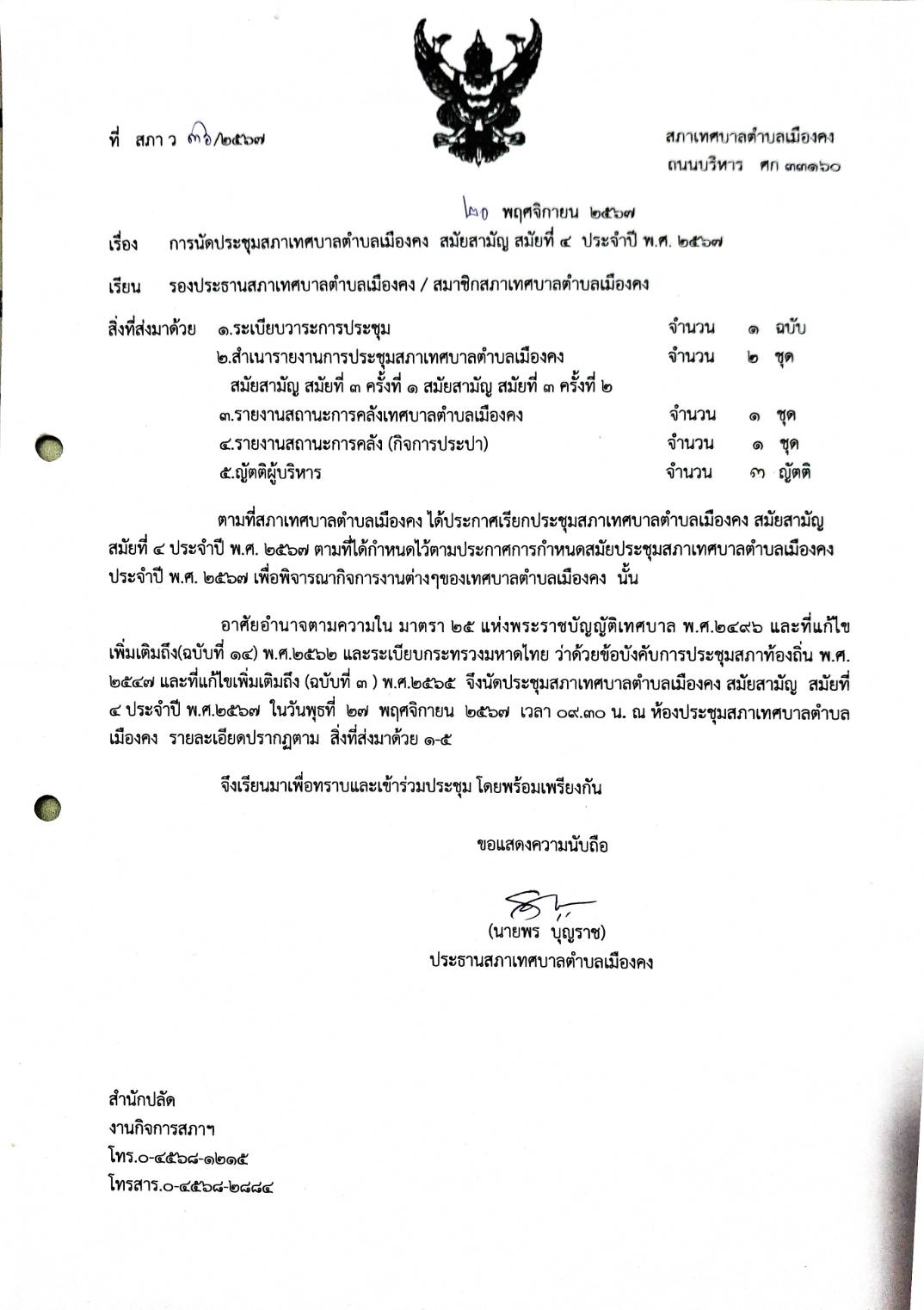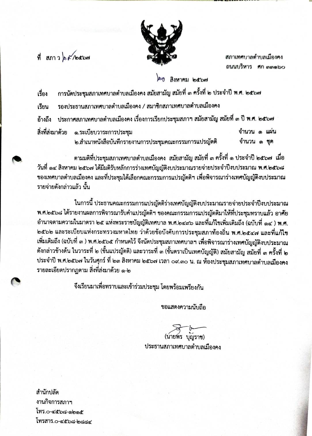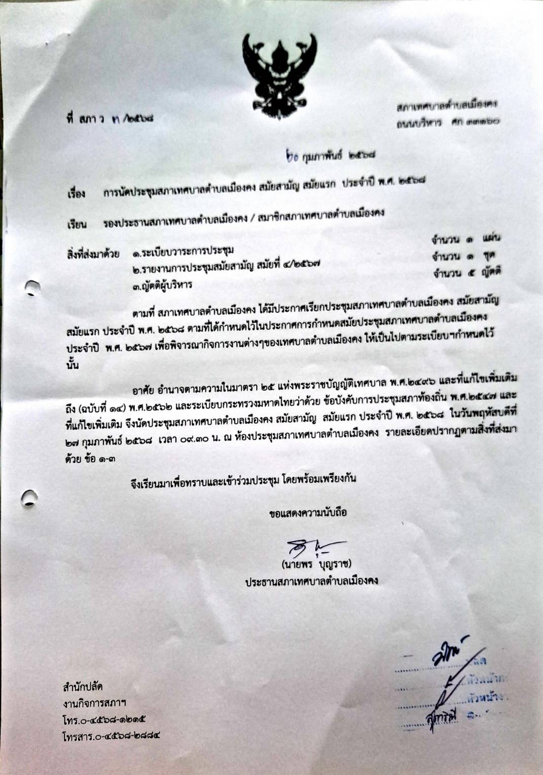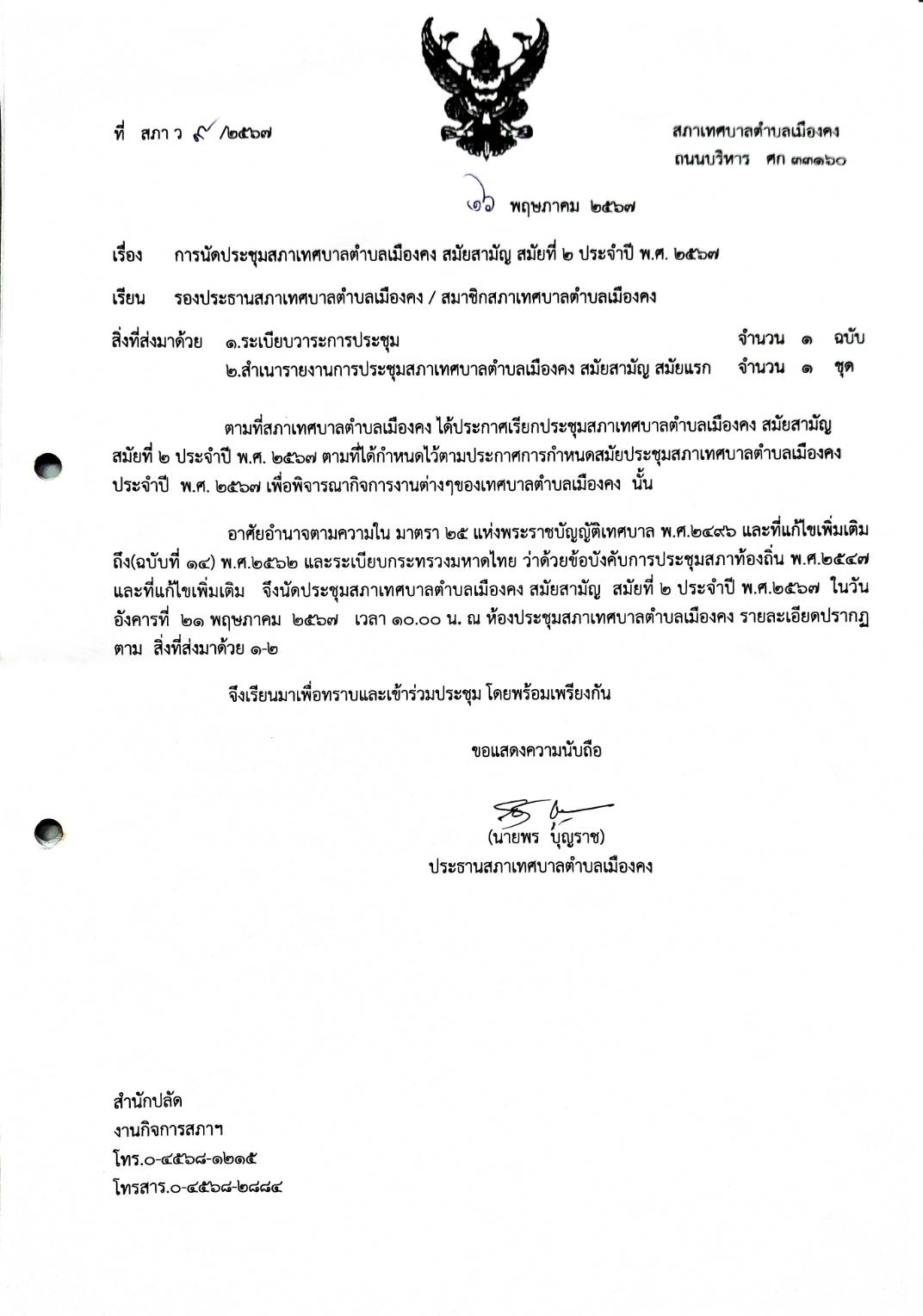 เทศบาลตำบลเมืองคง อำเภอราษีไศล จังหวัดศรีสะเกษ 33160 โทรศัพท์ 045-681215, 045-682774